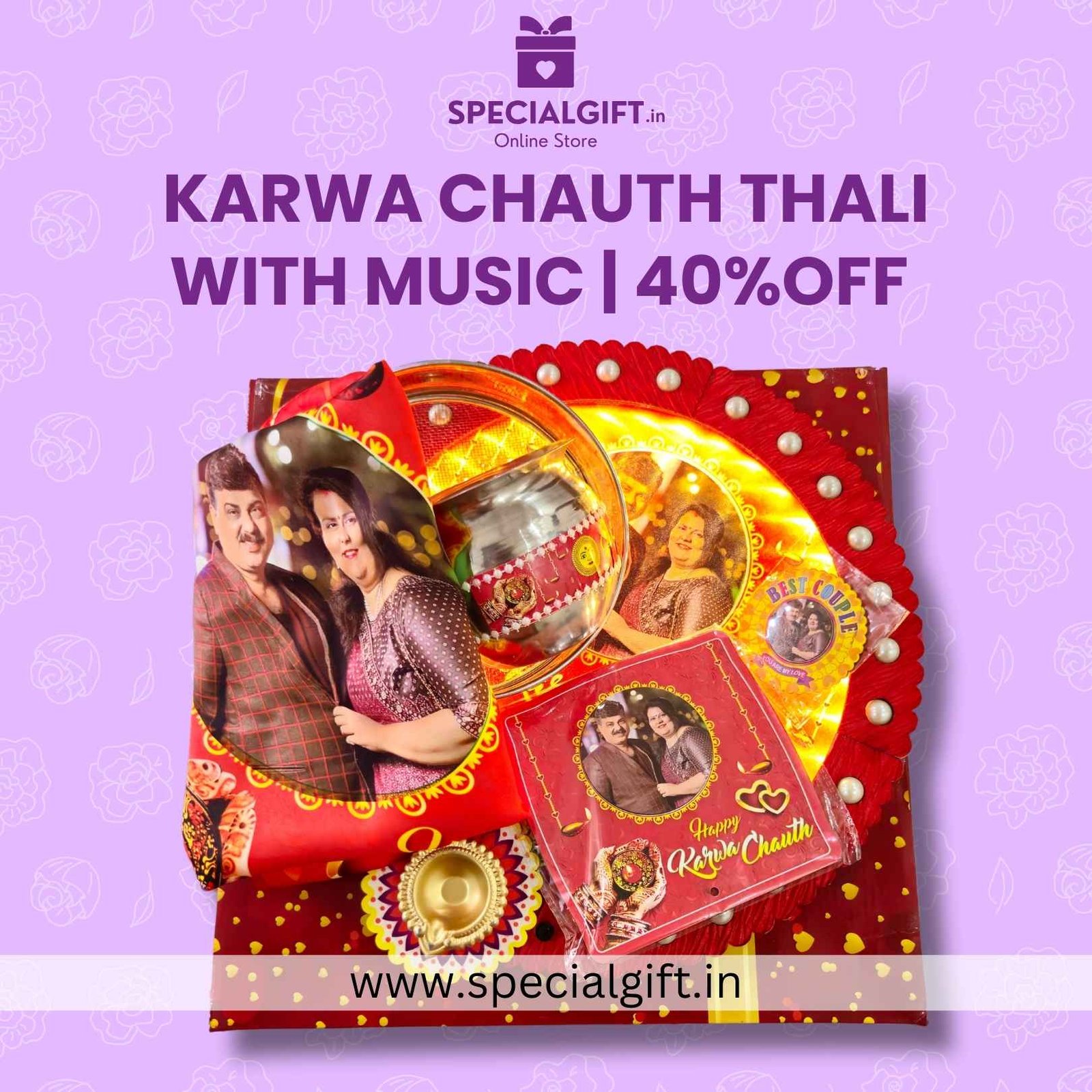 "Celebrate love and tradition this Karwa Chauth with our customized musical thali, designed to make your festivities unforgettable. Embrace the magic of togetherness!"